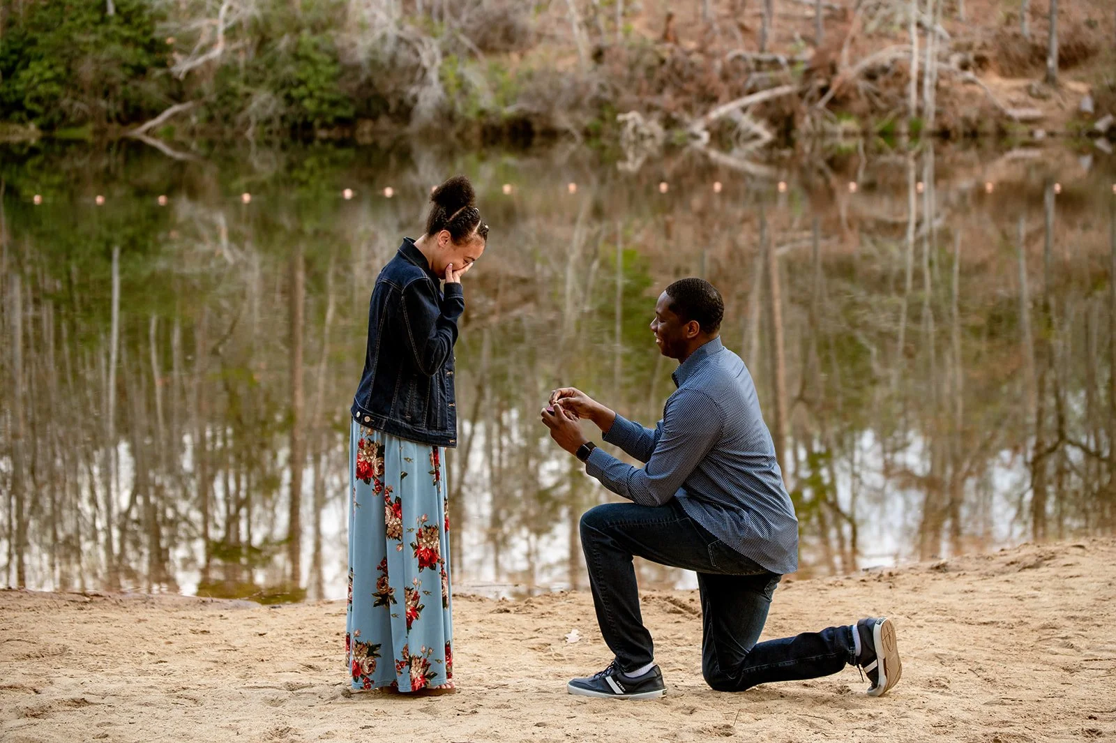 For our nature lovers - Paris Mountain State Park is a playground a great surprise proposal spots. A short drive from Greenville, you’ll be surrounded by the natural flora and fauna of the region, which means wildflowers in the spring and falls colors in October. The spots we like best are all on flat trails and less than 1/2 mile walk to get to. Weather is an important factor here as there’s not a great covered backup spot. And restrooms sometimes aren’t open for the first hour the park is open so plan accordingly. Thankfully there is public wifi at the Park Center if you have poor signal trying to connect with your photographer.